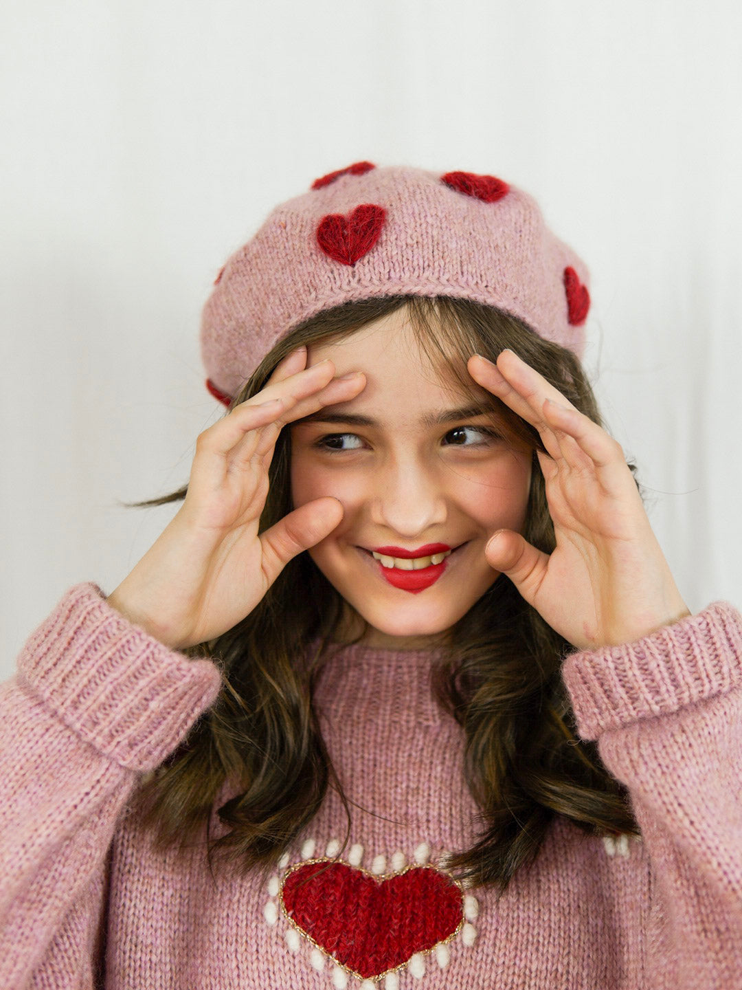 This charming Beret goes perfectly with our cardigan and vest. Composition:70% baby alpaca23% polyamide 7% merino wool Only hand wash at 30 degrees, as the composition is natural. The order is acco... -